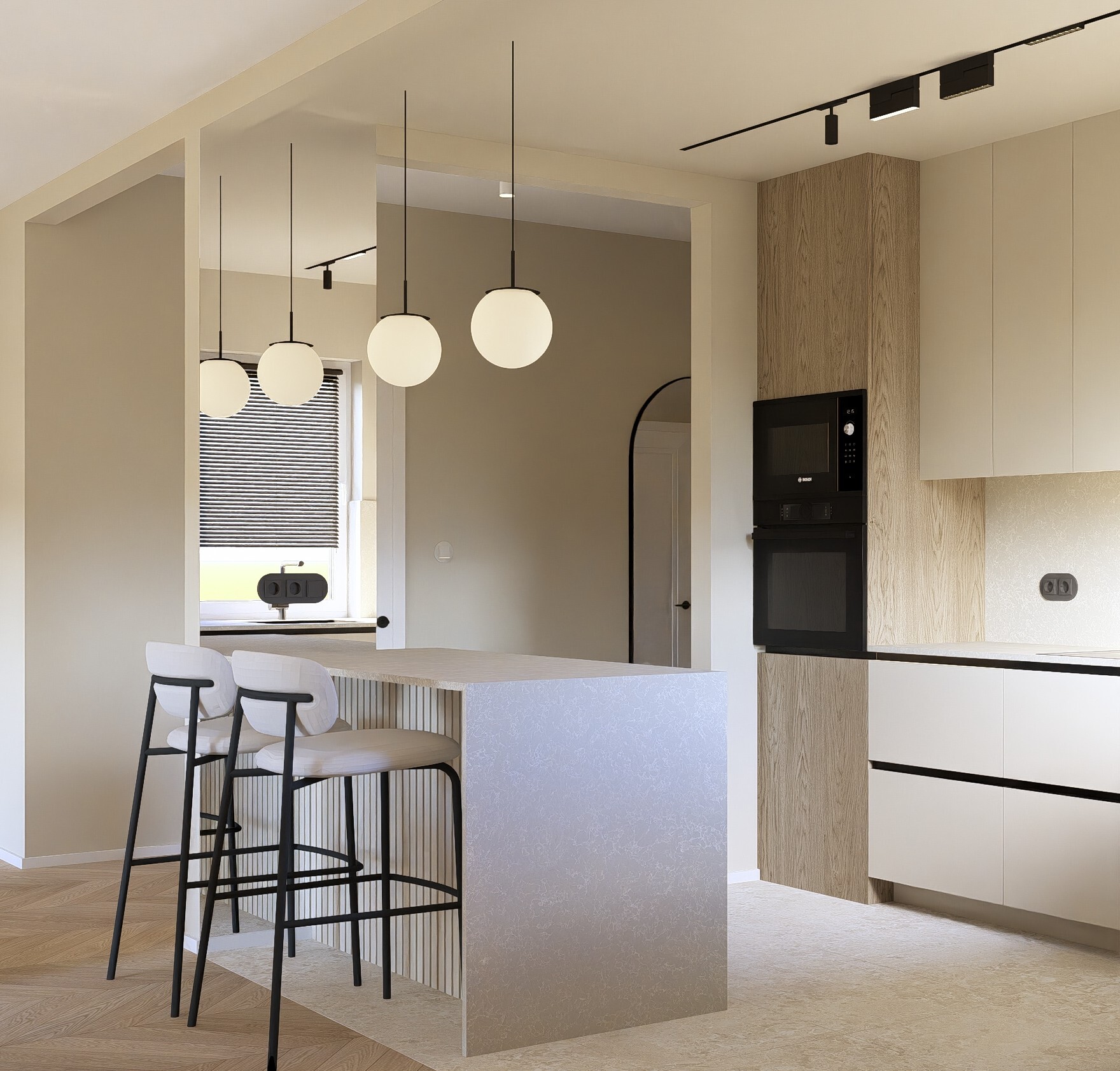 Projekt małej kuchni w domu jednorodzinnym przy ul. Leśnej w Białymstoku